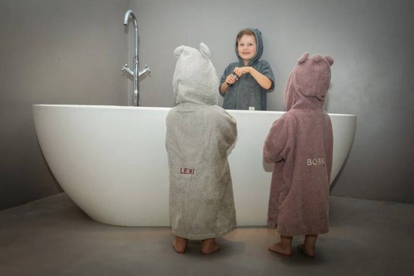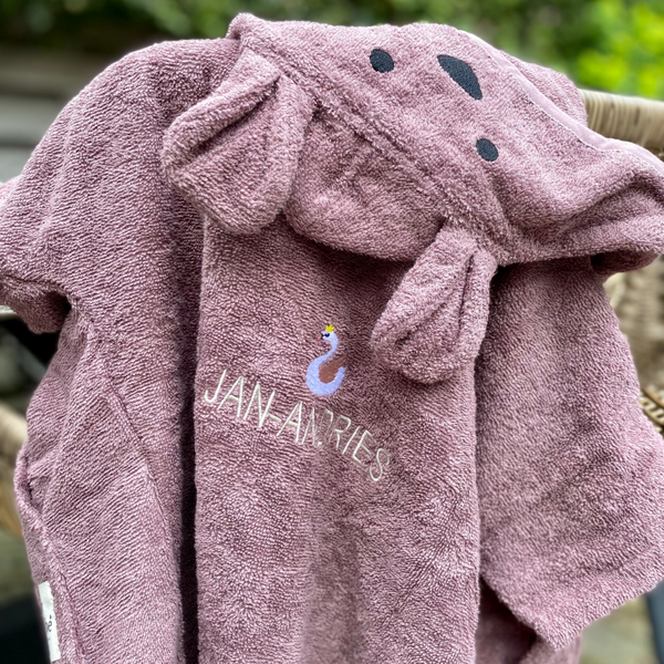 In deze badcape is jouw kleintje de prins of prinses van de badkamer én van het zwembad of strand! Het is een heerlijke cape om aan te schieten na het badderen of na het zwemmen. Door het zachte katoen is het net een warme knuffel. De robes zijn te personaliseren met de naam van jouw kleine koter. Deze wordt aan de achterkant van de robes geborduurd. Elke robe heeft een ritssluiting aan de voorzijde. Het is dus super gemakkelijk en handig om deze (snel) aan en uit te doen.